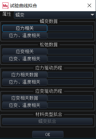 1、增加蠕变材料实验数据拟合功能,提升蠕变仿真的工作效率。可用于拟合的蠕变模型包括幂律、指数律、双曲律模型。