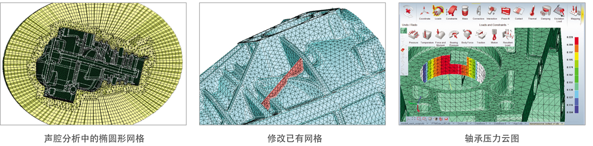 • 使用模板和流程捕捉来生成满足各种分析类型和相应准则的合适的网格,例如应力分析、NVH分析、声腔分析和疲劳分析等